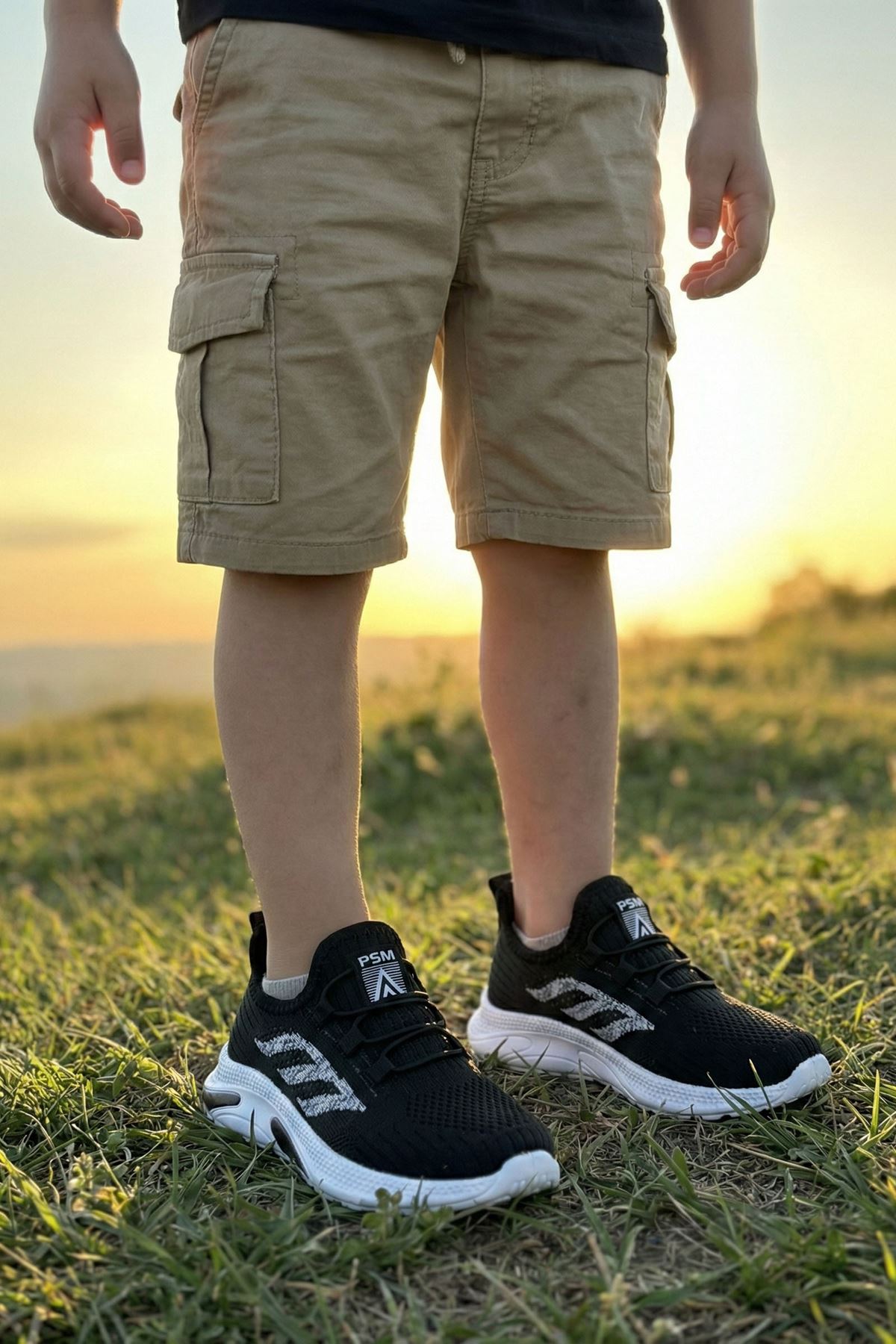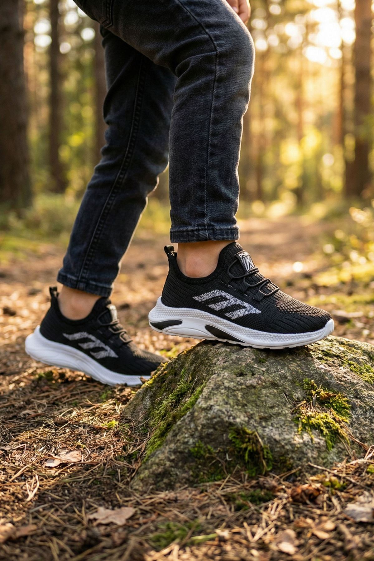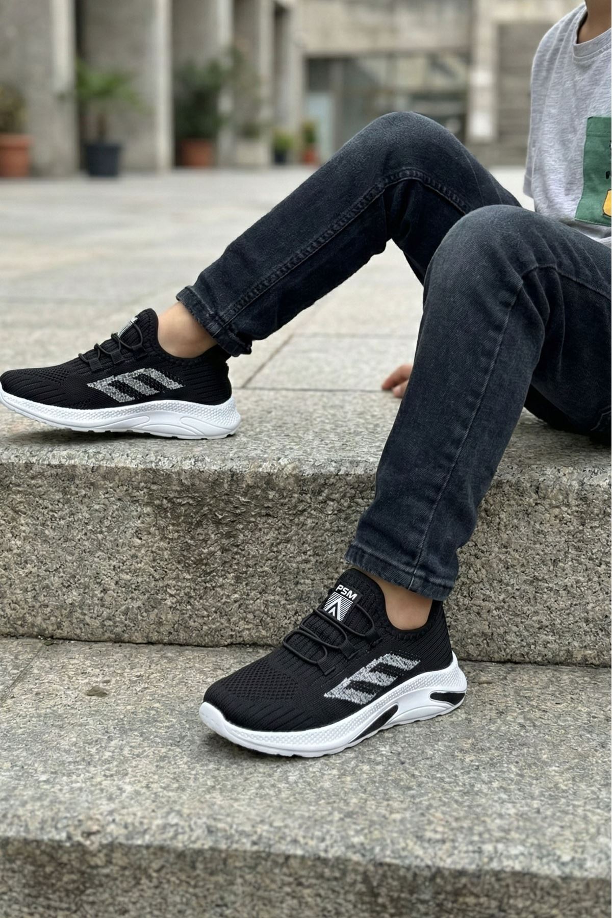 Siyah Beyaz Triko Çocuk Spor Ayakkabı