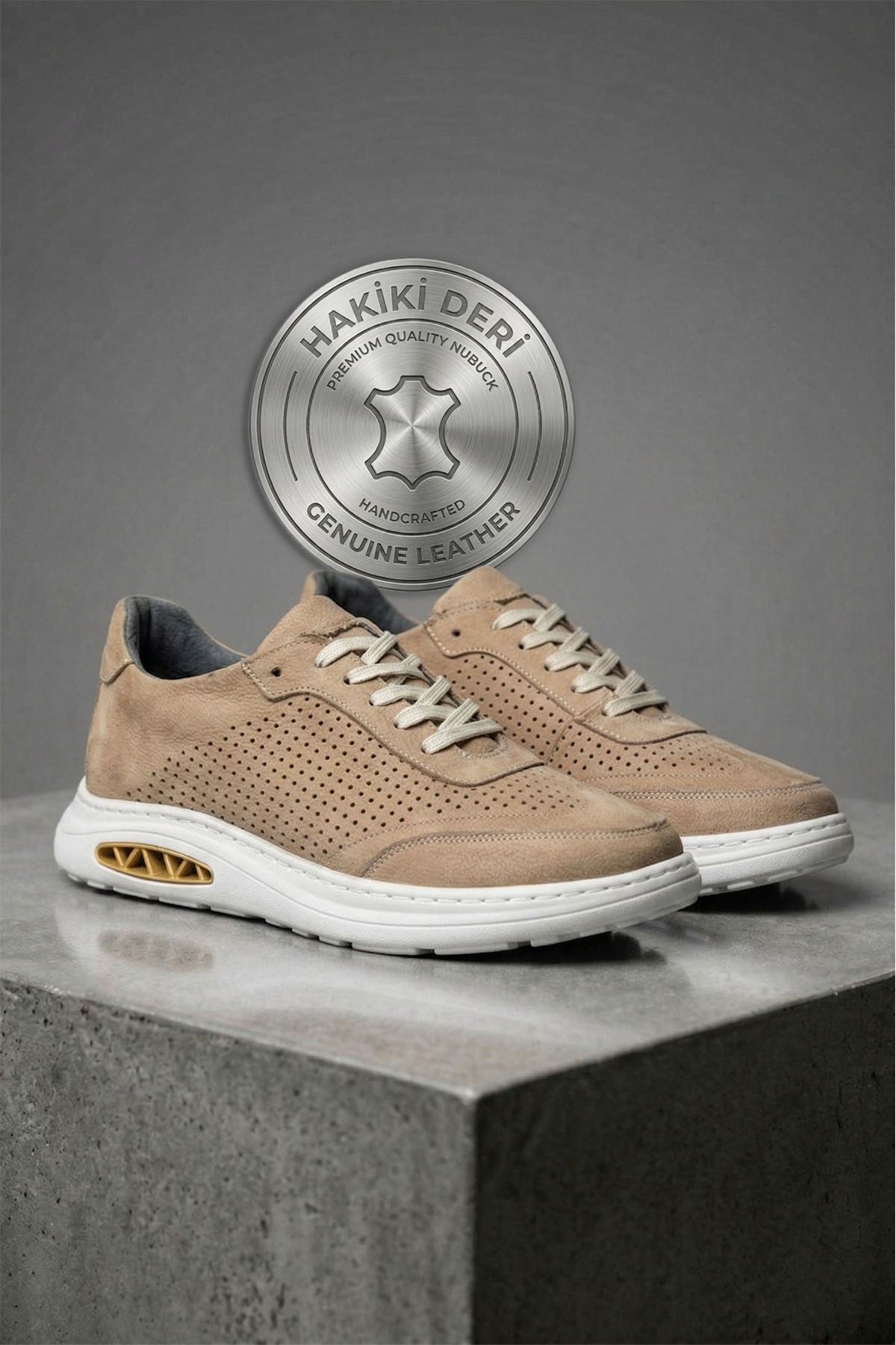 Bej Core Hakiki Nubuk Deri Erkek Günlük Spor Ayakkabı