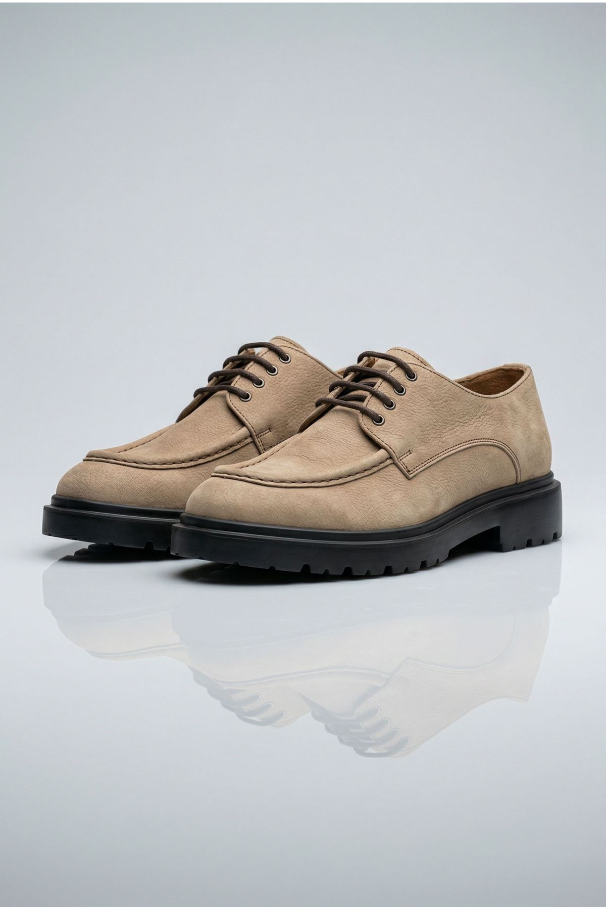 Bej Nubuk Aquet Saraçlı Bağcıklı Hakiki Deri Erkek Klasik Ayakkabı