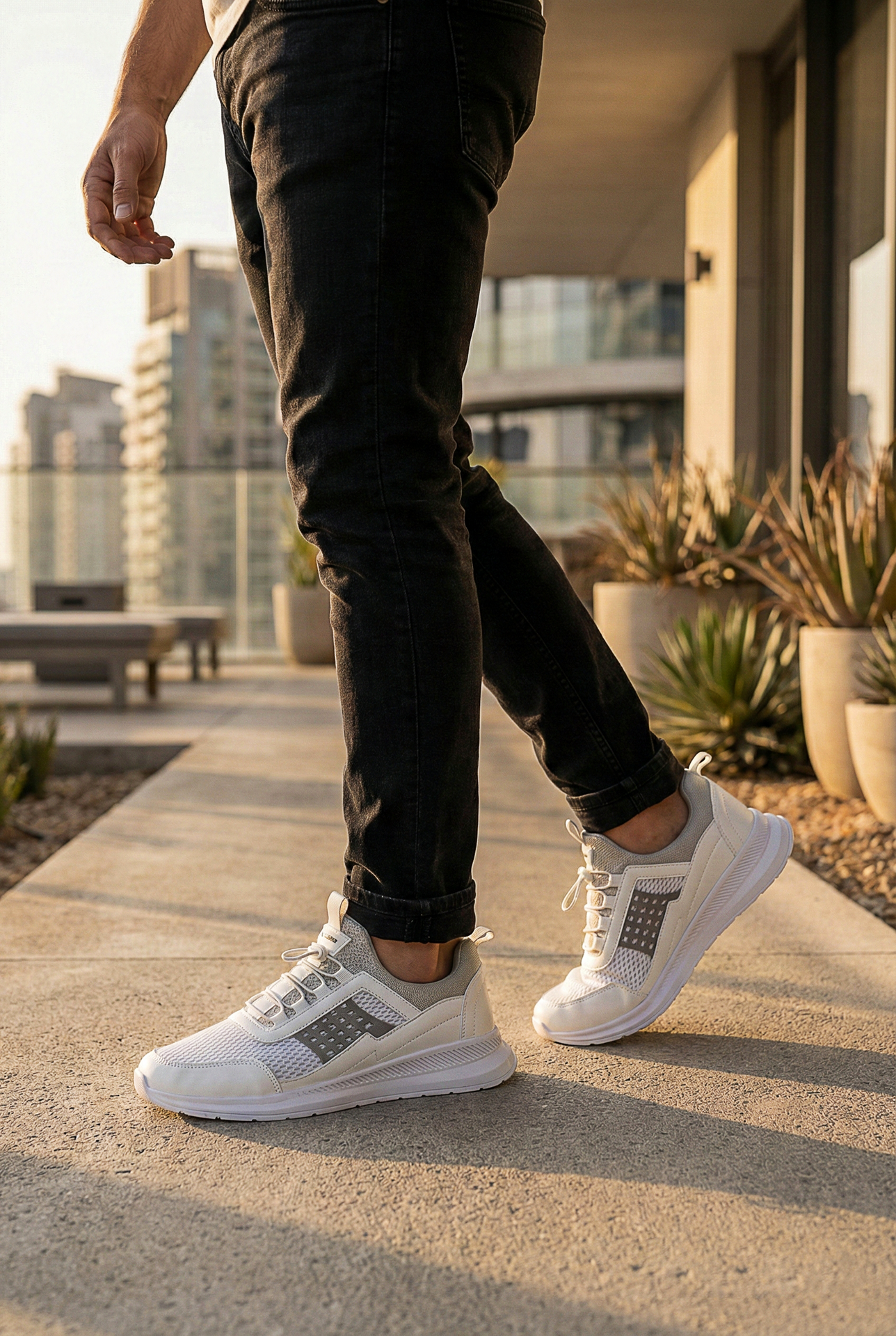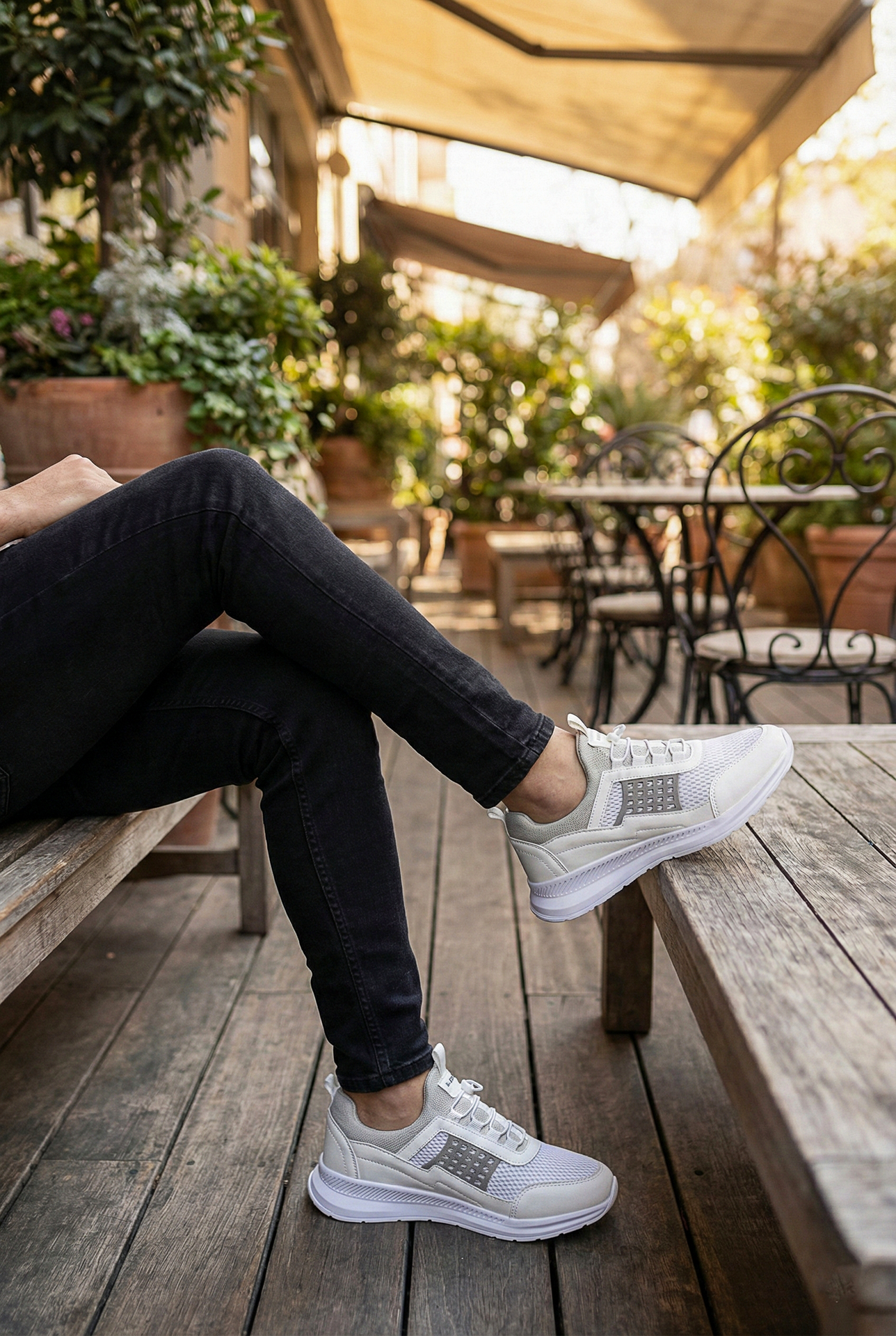 Adımlarınızı hafifletin, tarzınızı yükseltin. Yeni sezon Beyaz Air Erkek Spor Ayakkabı, dinamik şehir hayatına uyum sağlamak için tasarlandı. Özel üretim file (mesh) üst yüzeyi sayesinde ayağınızın gün boyu nefes almasını sağlar, terlemeyi minimuma indirir.