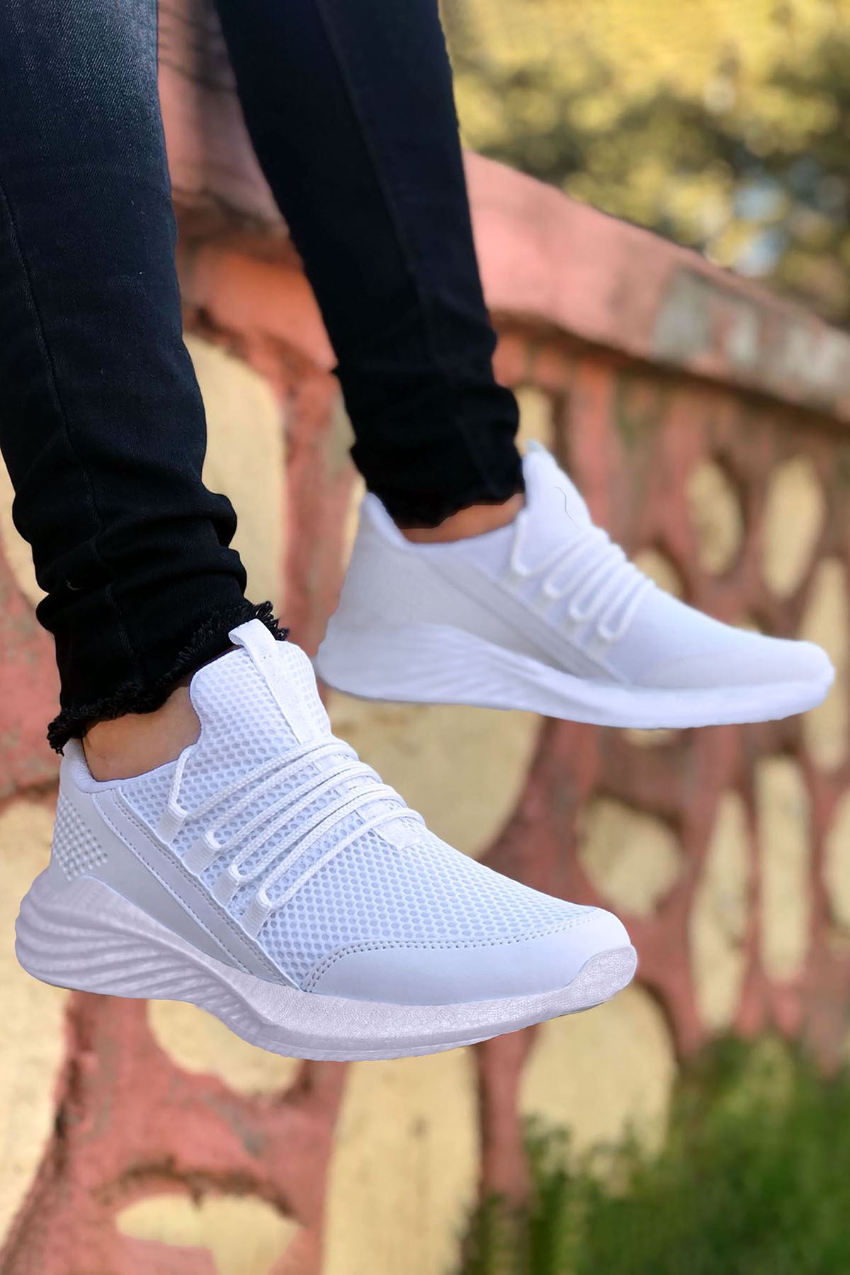 Beyaz Bağcık Detay Fileli Erkek Spor Ayakkabı