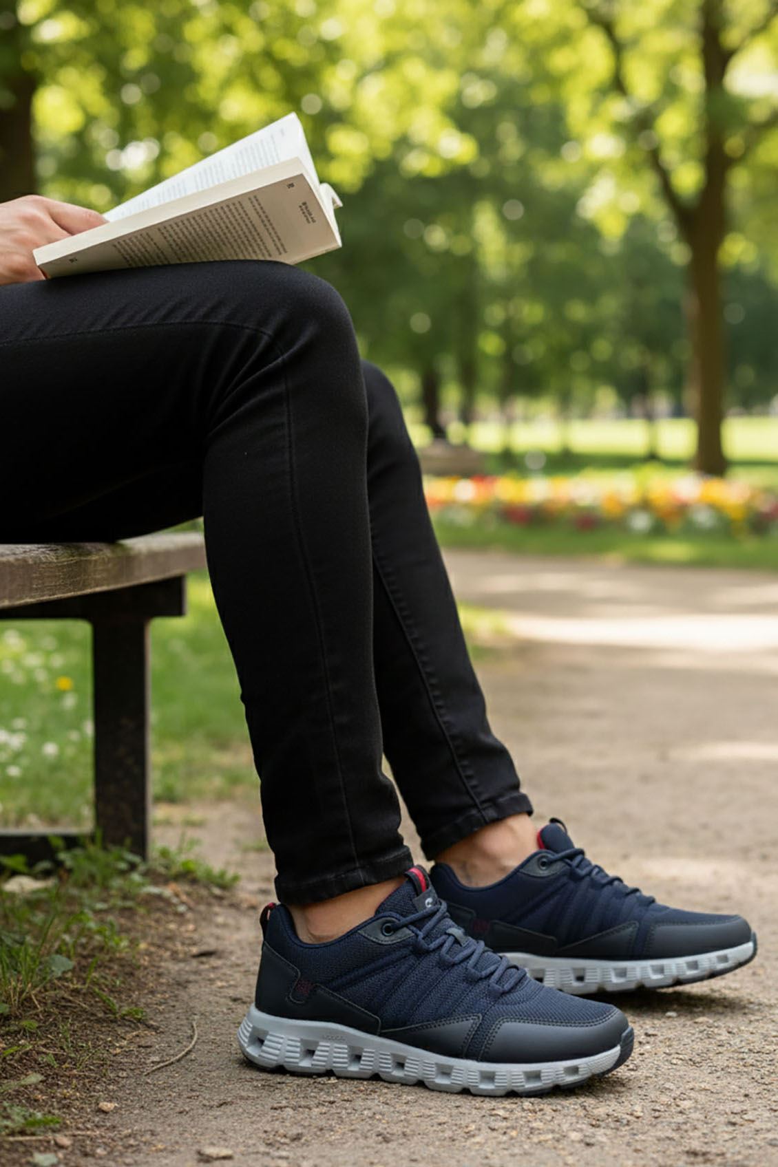 Gri Taban Lacivert Çizgili Erkek Spor Ayakkabı