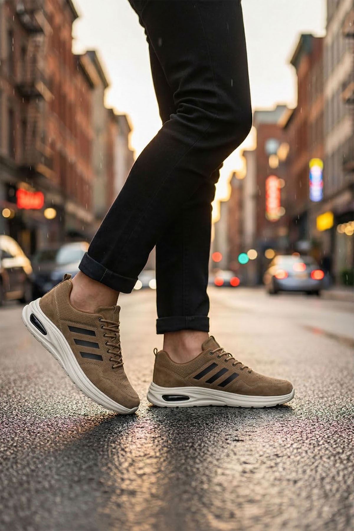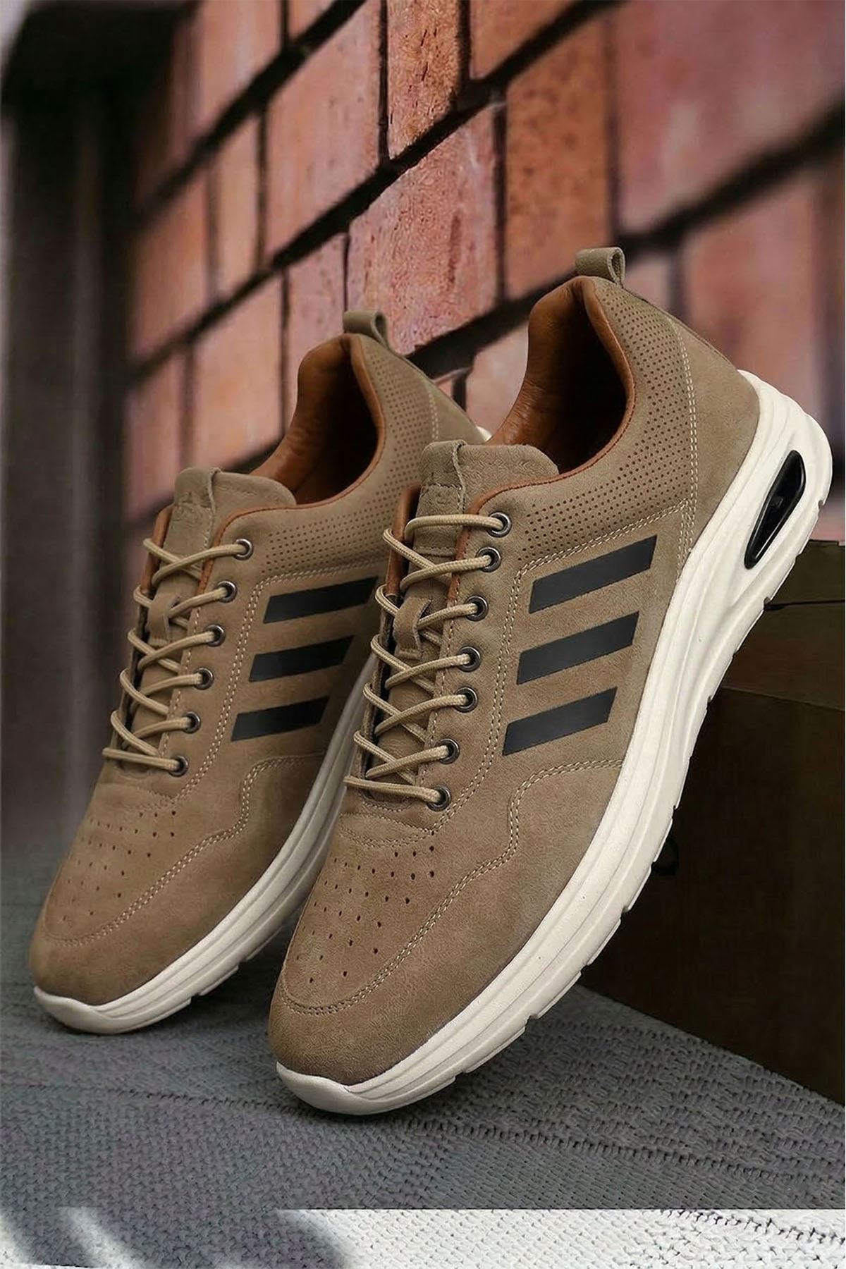 Kahve Çizgili Runblaze Hakiki Deri Spor Ayakkabı
