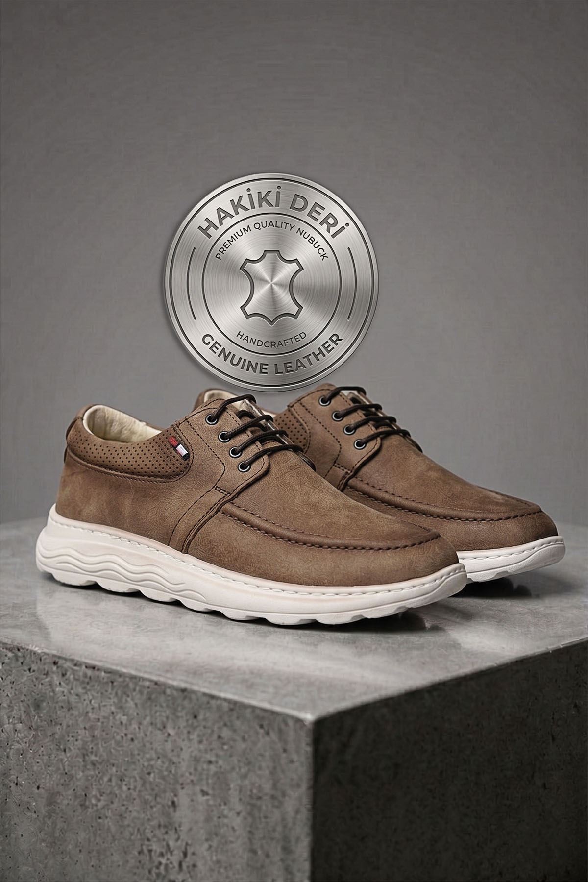 Hakiki Nubuk Dokusu: Birinci sınıf nubuk deriden üretilen dış yüzey, mat ve kadifemsi yapısıyla sofistike bir görünüm sunarken ayaklarınızın nefes almasını sağlar.
