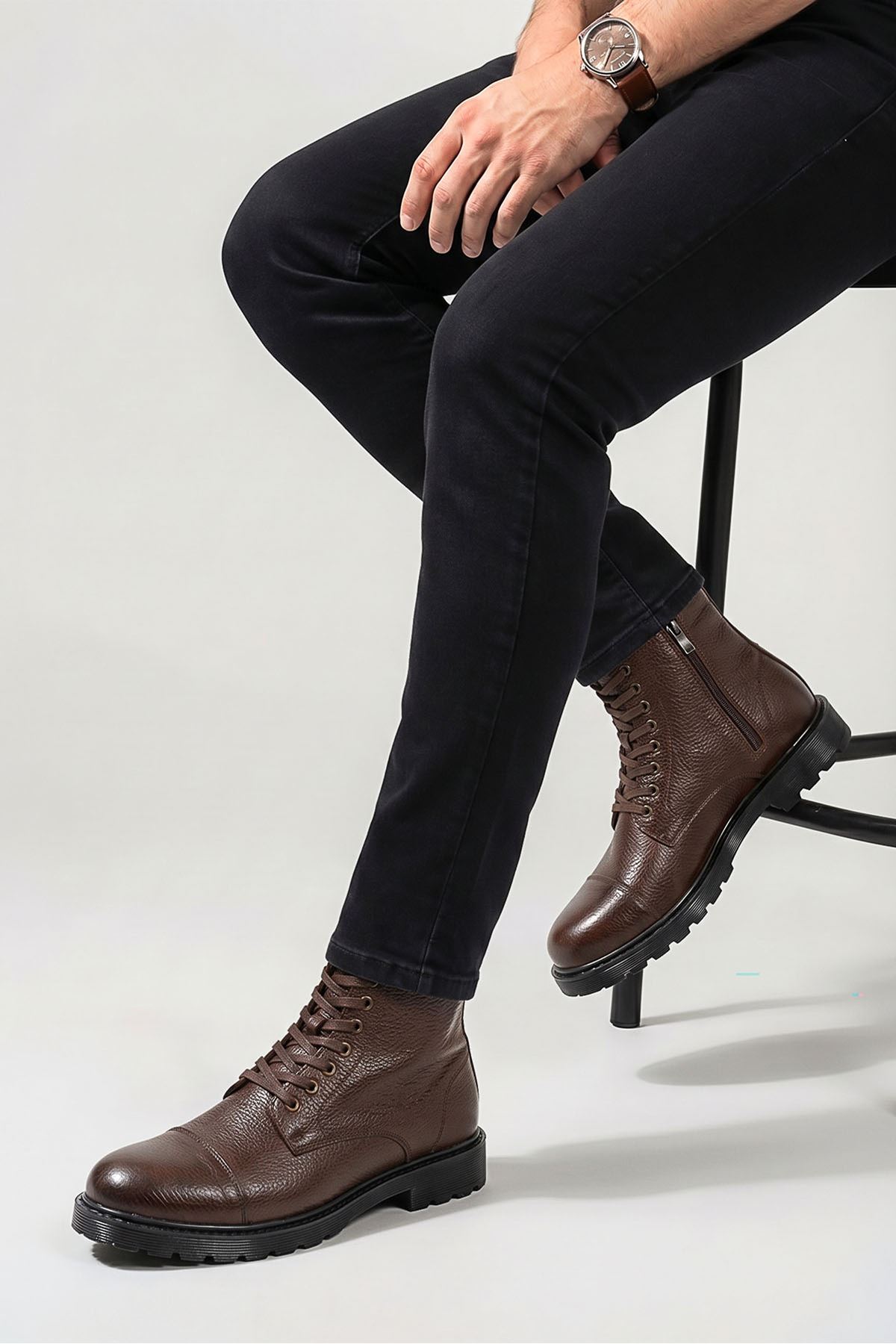 Kahve Traction Hakiki Deri Fermuarlı Chelsea Erkek Bot