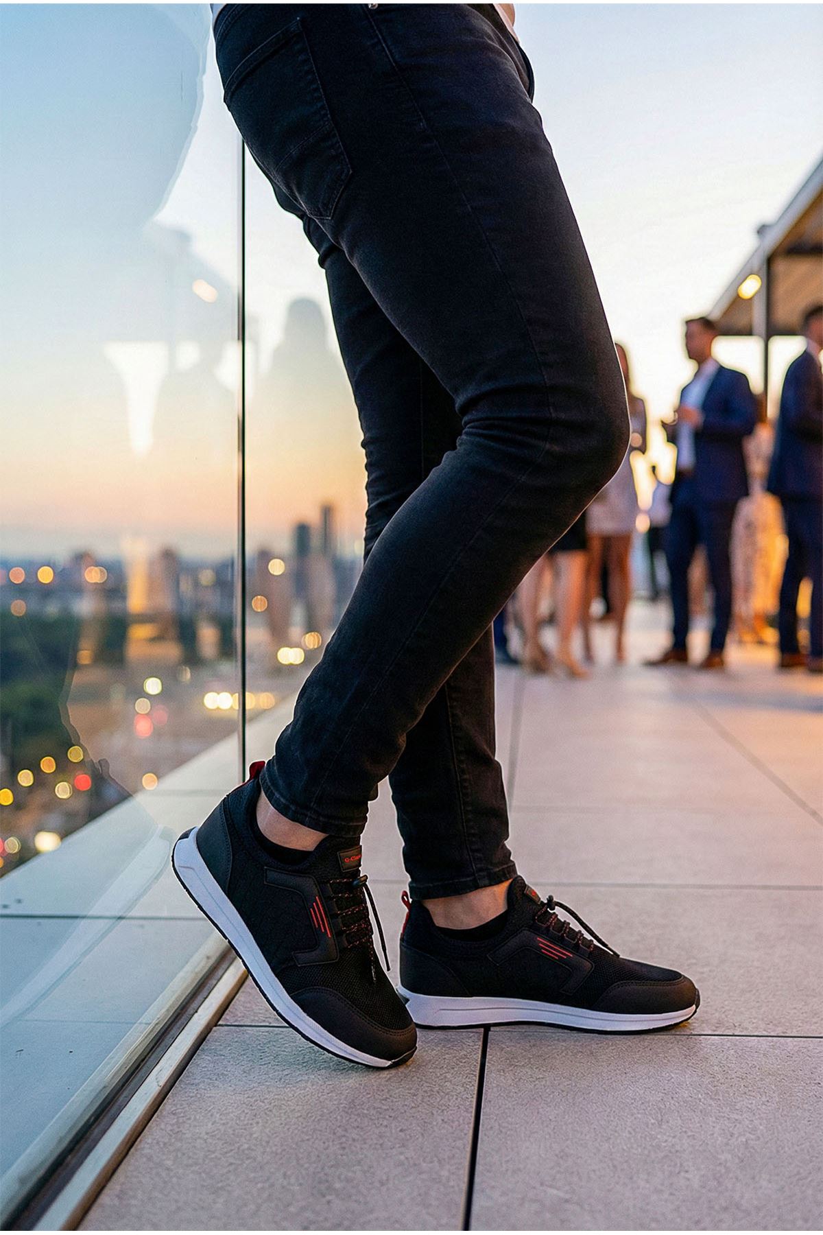 Şehrin hızına yetişmek hiç bu kadar şık ve konforlu olmamıştı. Siyah Beyaz Erkek Spor Ayakkabı, antrasit ve gri tonlarının asil duruşunu, enerjik turuncu detaylarla birleştirerek günlük stilinize yeni bir soluk getiriyor. İster yoğun bir iş gününde ister hafta sonu yürüyüşlerinde; her adımda hafifliği hissedeceksiniz.