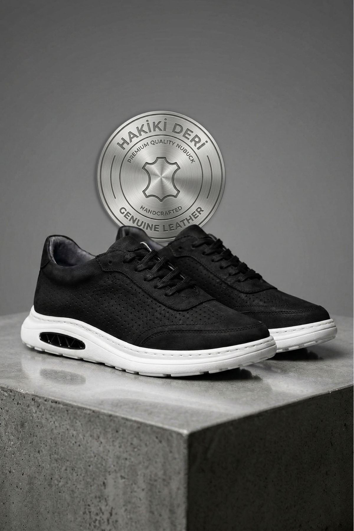Siyah Core Hakiki Nubuk Deri Erkek Günlük Spor Ayakkabı