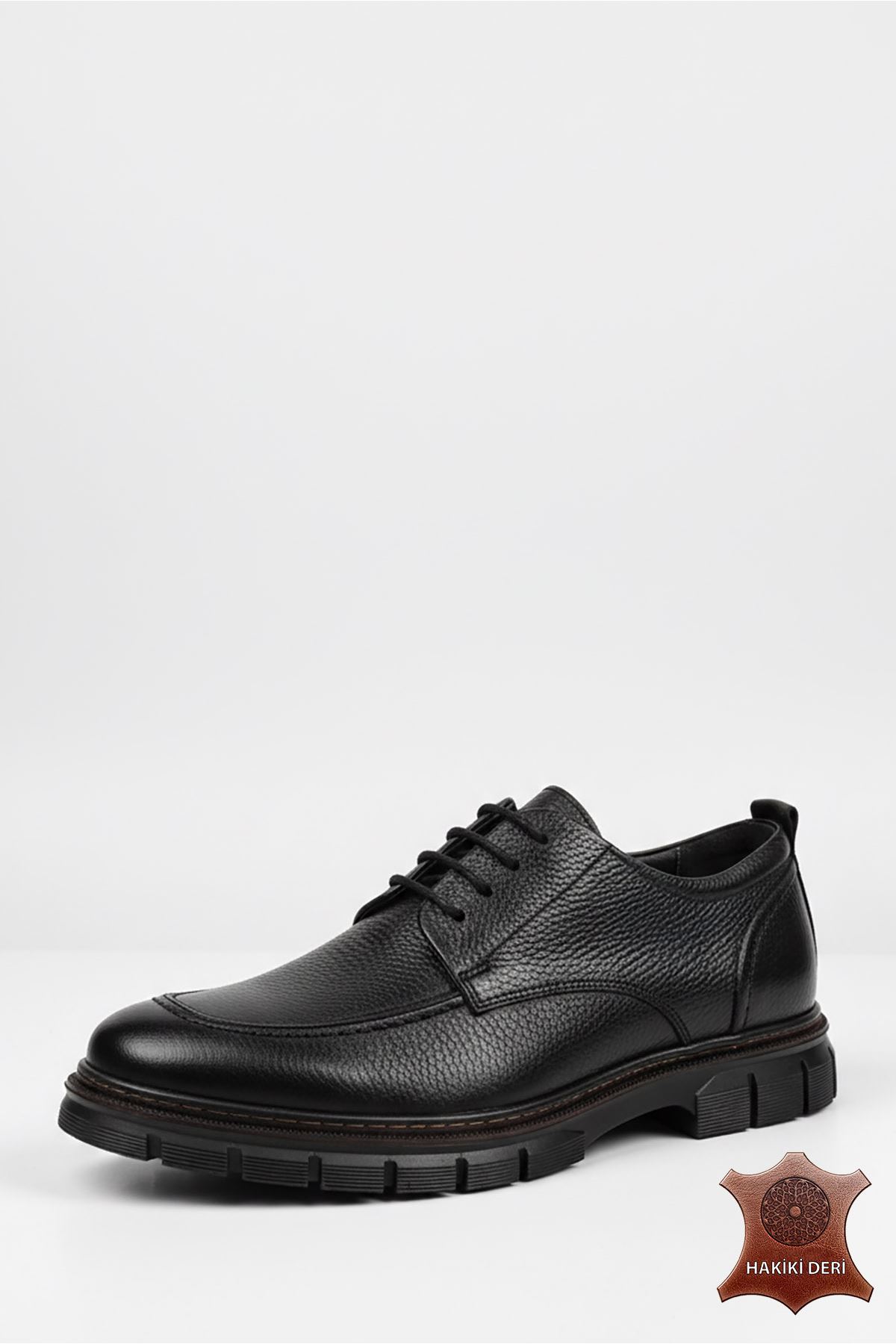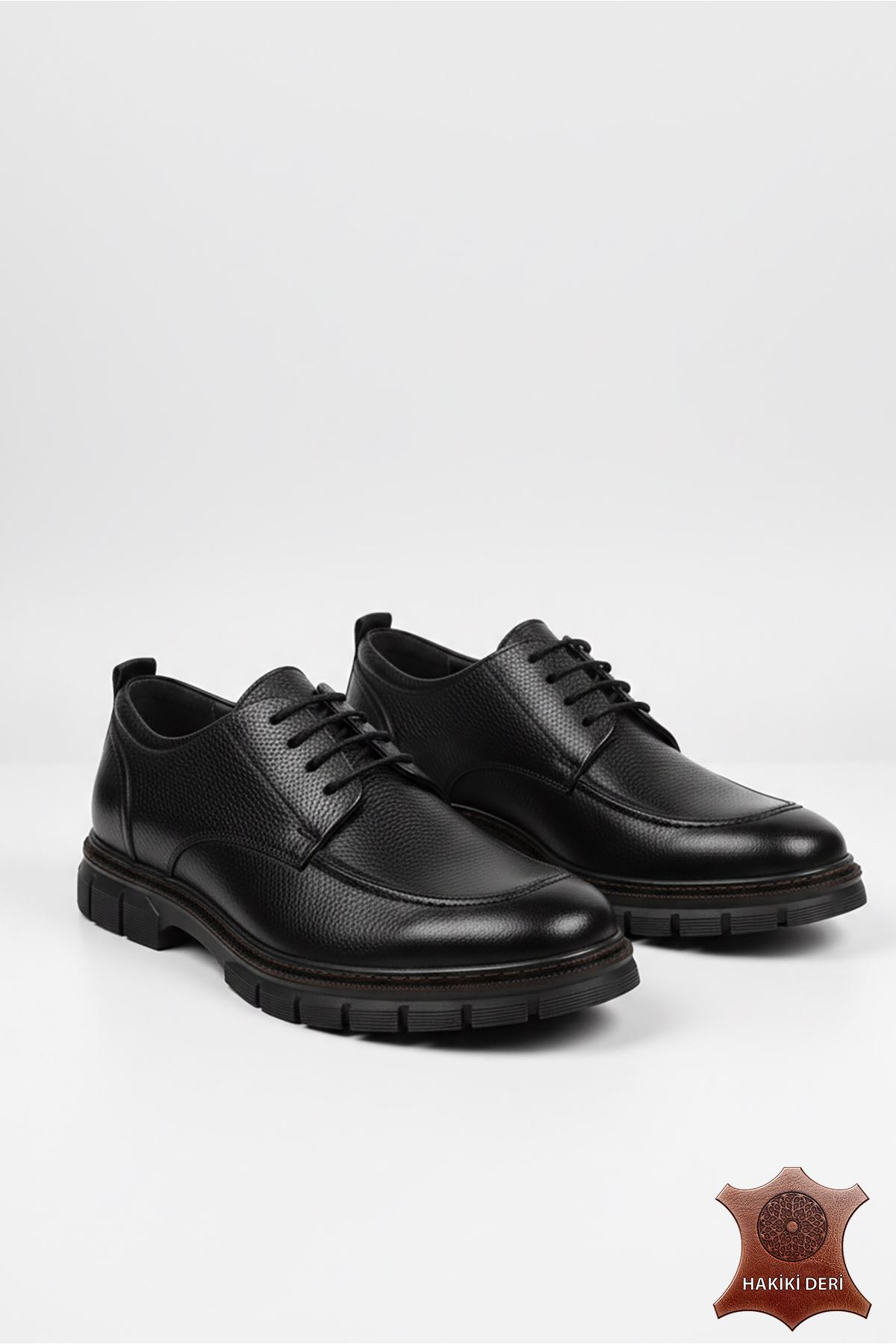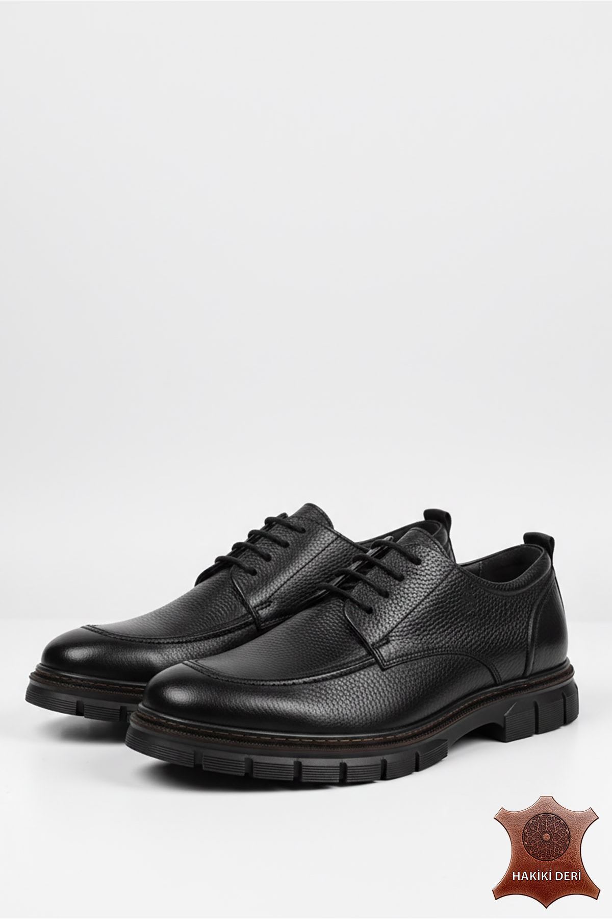 Siyah Desenli Hakiki Deri Erkek Klasik Ayakkabı