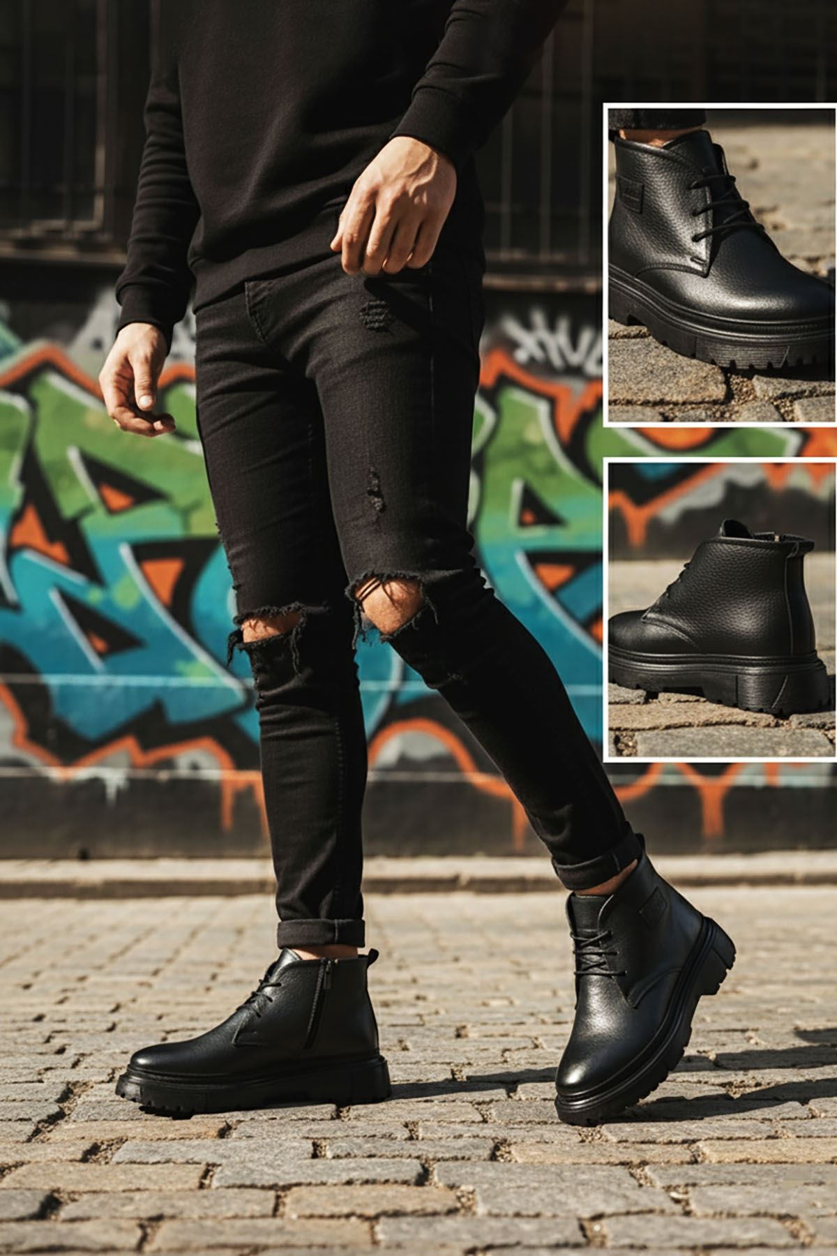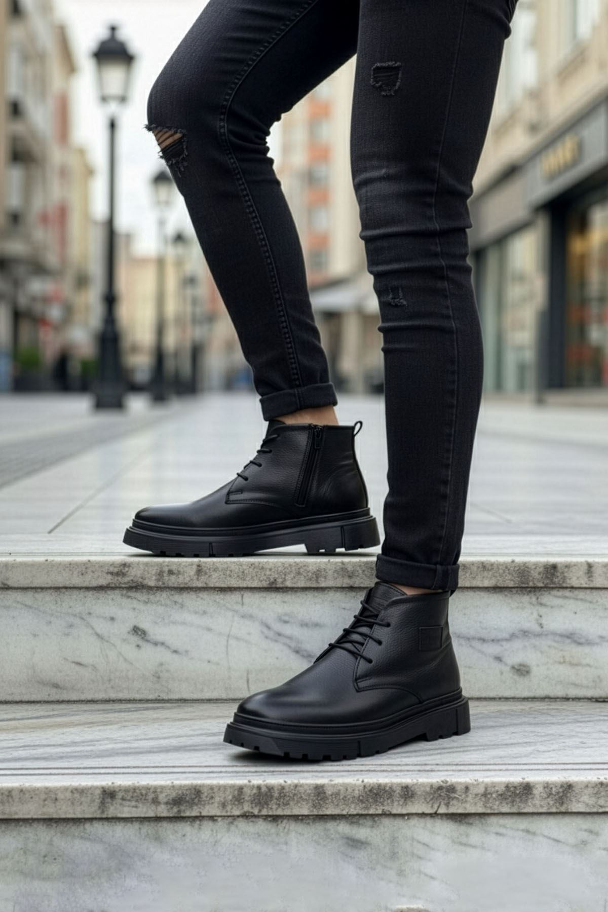 Siyah Hakiki Deri Erkek Yarım Bot