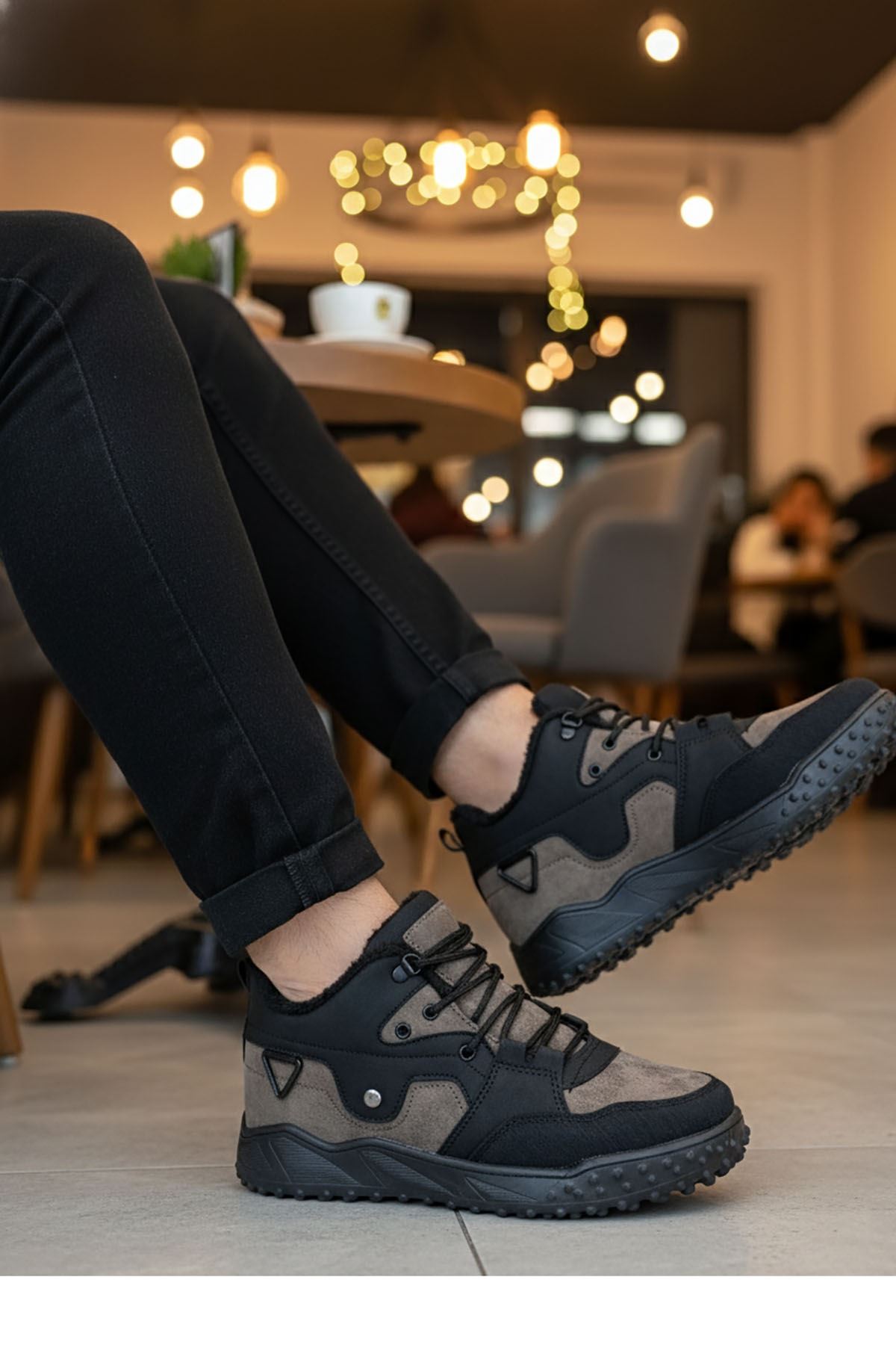Siyah Kahve İçi Kürklü Erkek Outdoor Trekking Yarım Bot