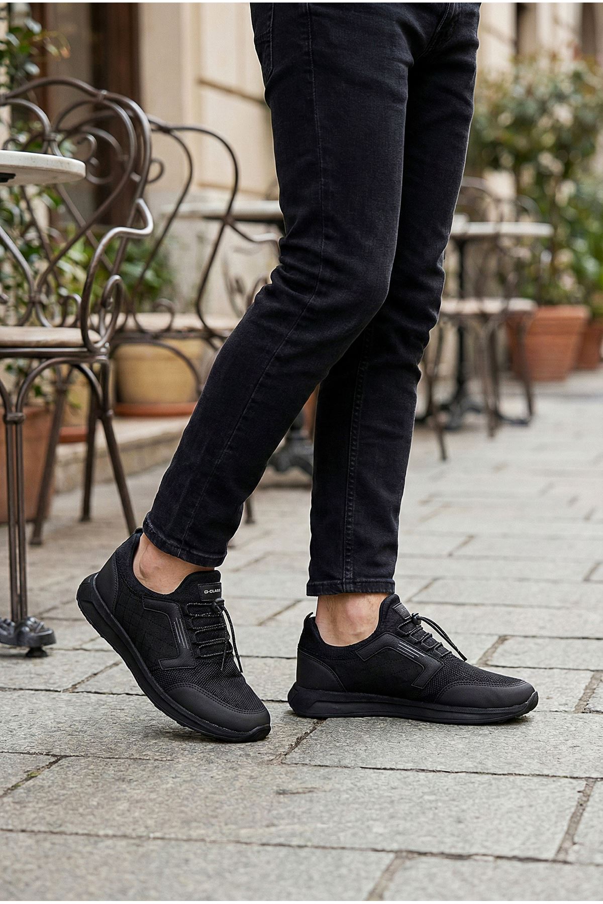 G-Class Detayları: Yan panellerdeki modern geometrik desenler ve dildeki "G-CLASS" imzası, ayakkabıya premium bir hava katar.