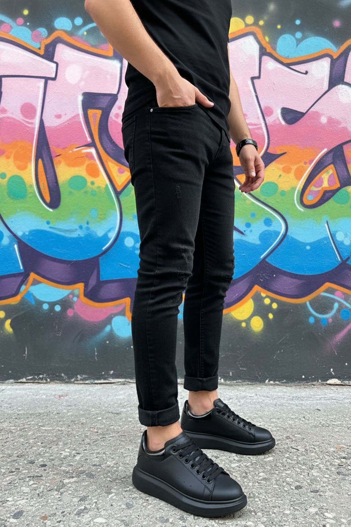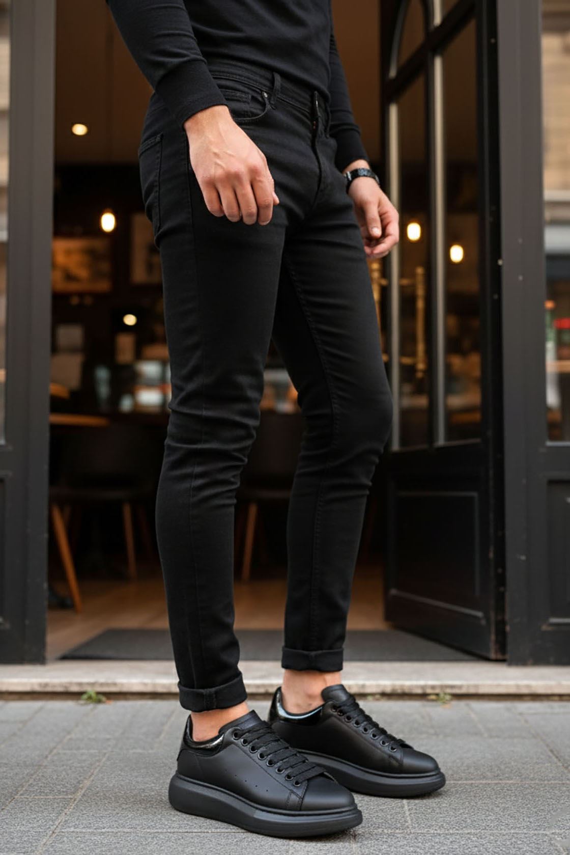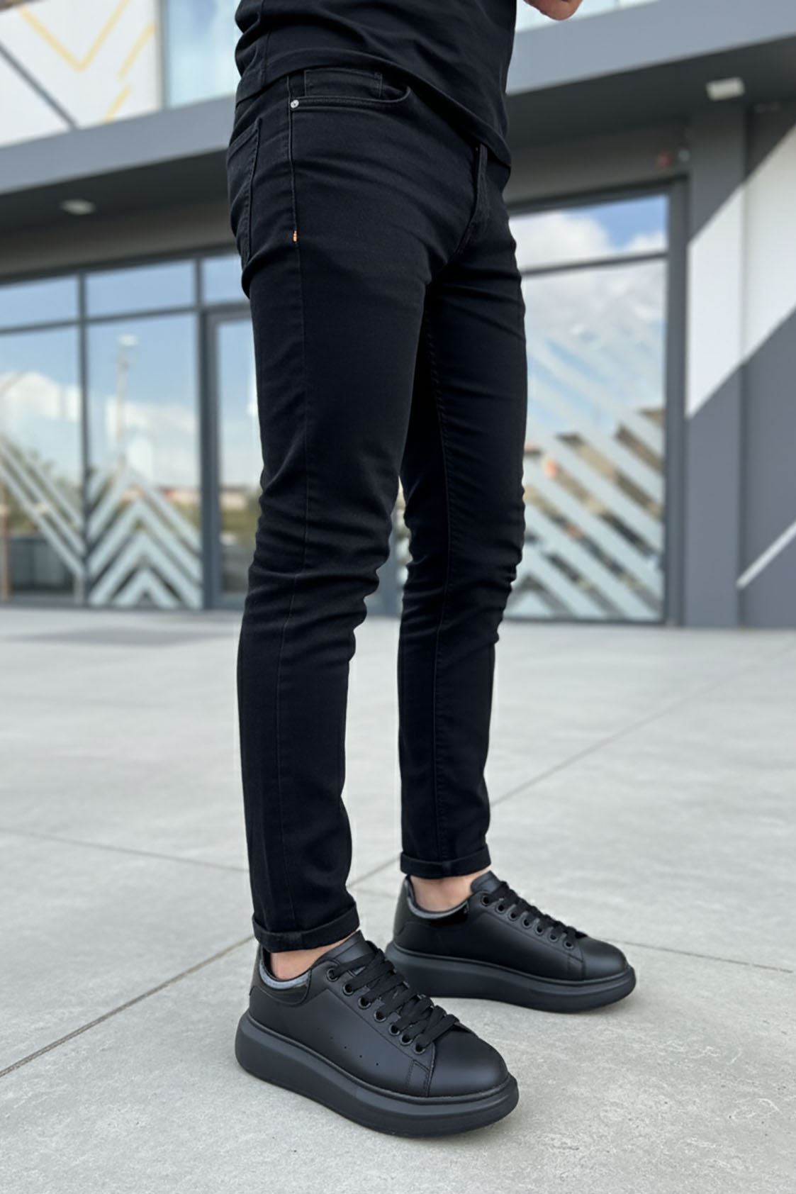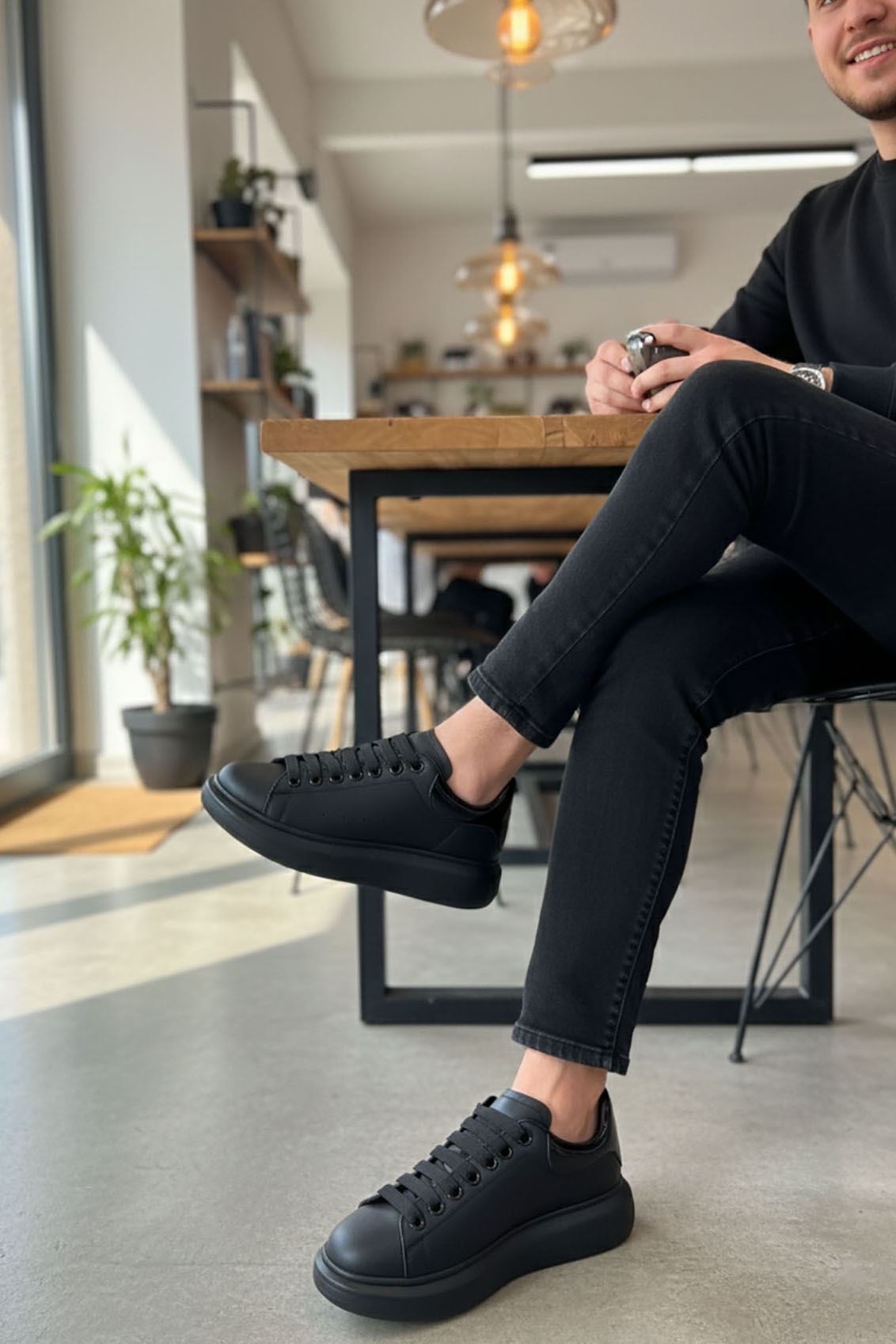 Siyah Yüksek Taban Erkek Spor Ayakkabı