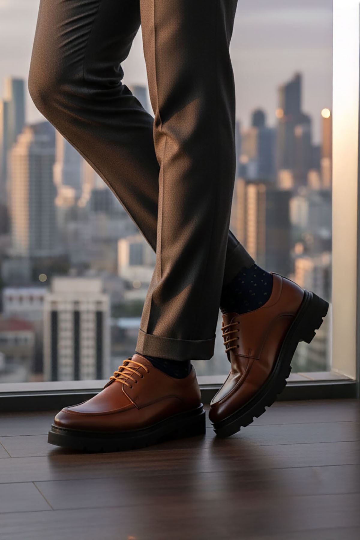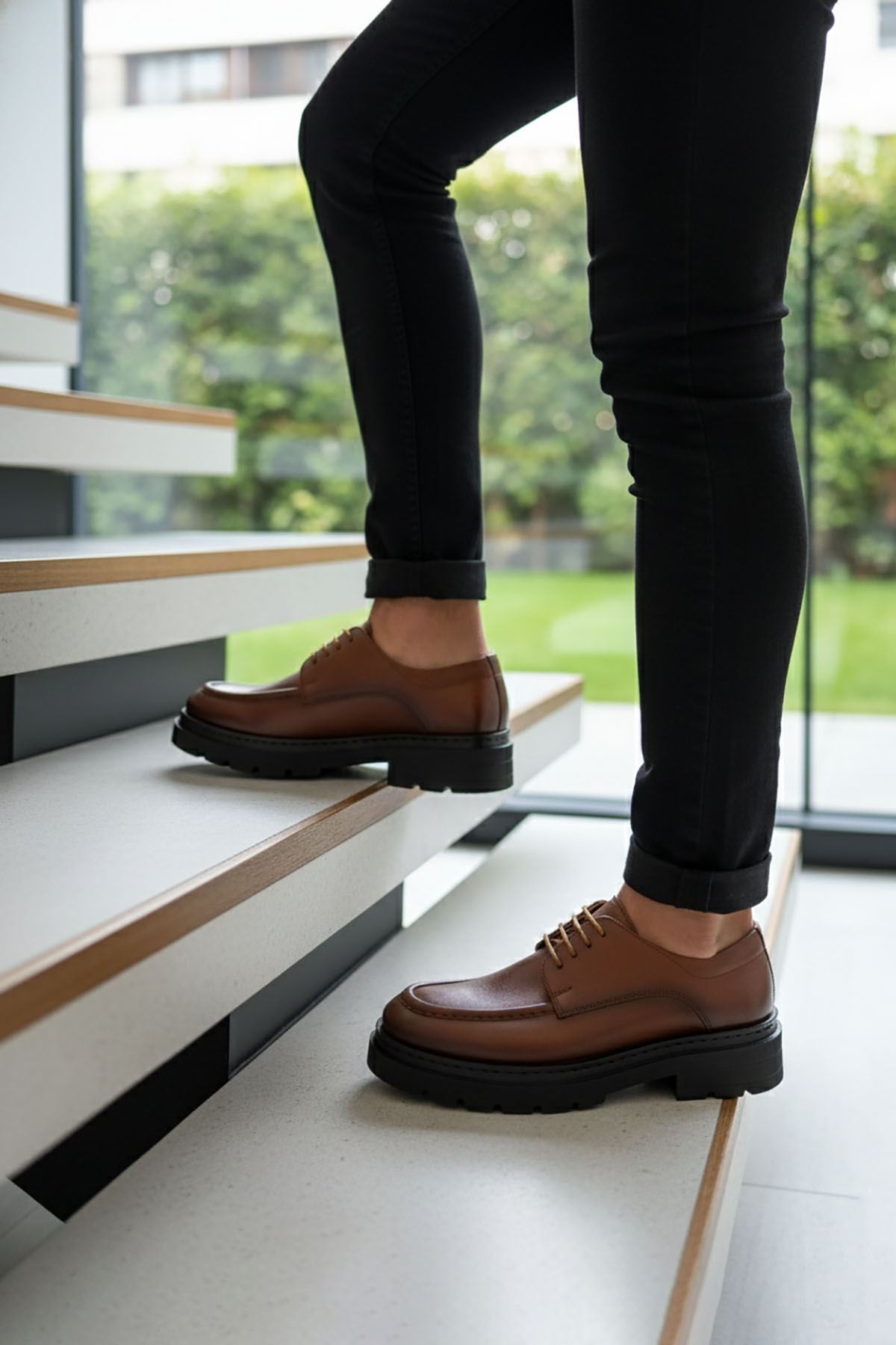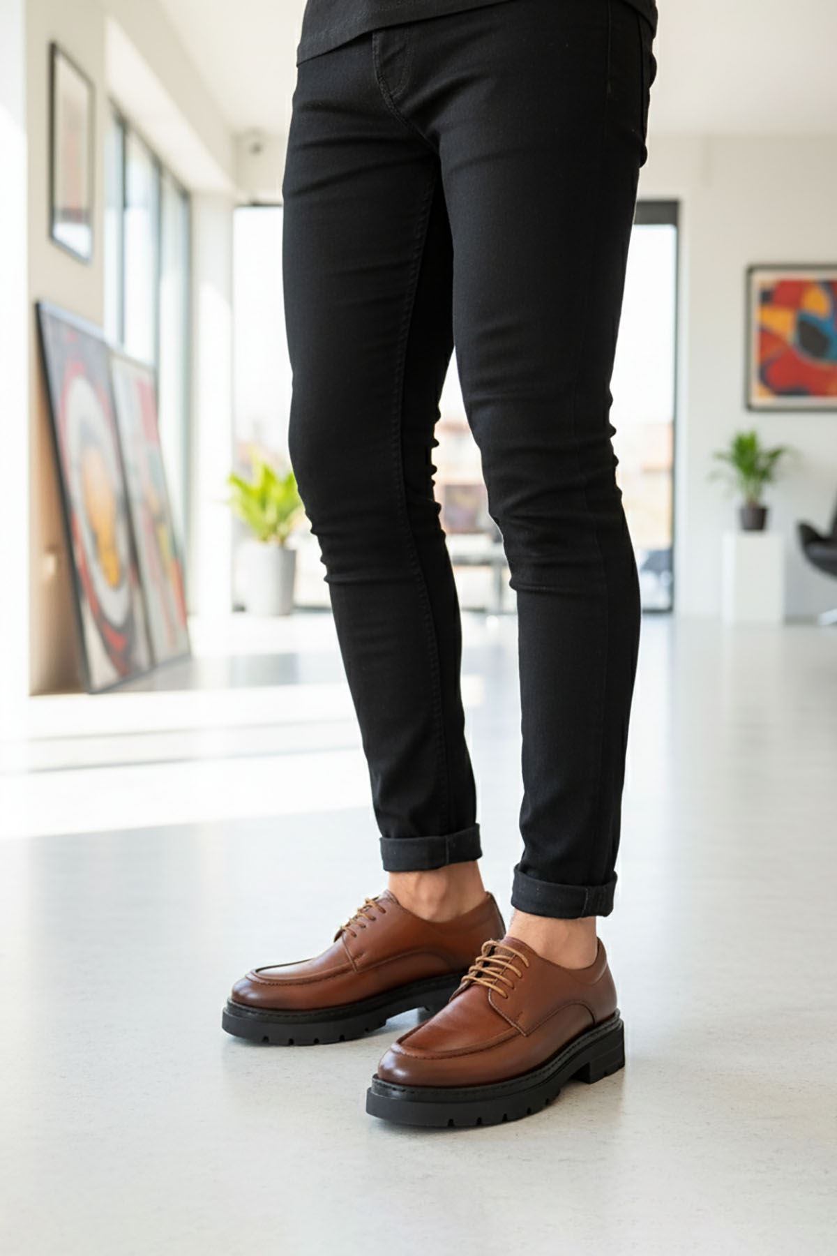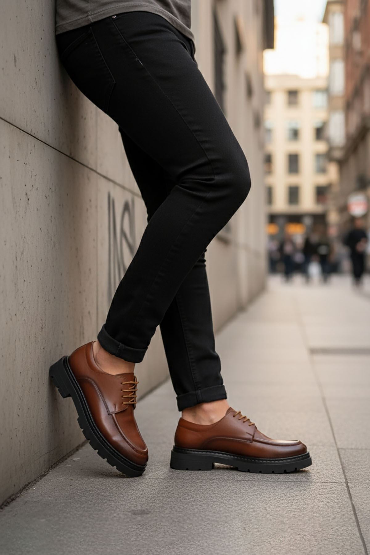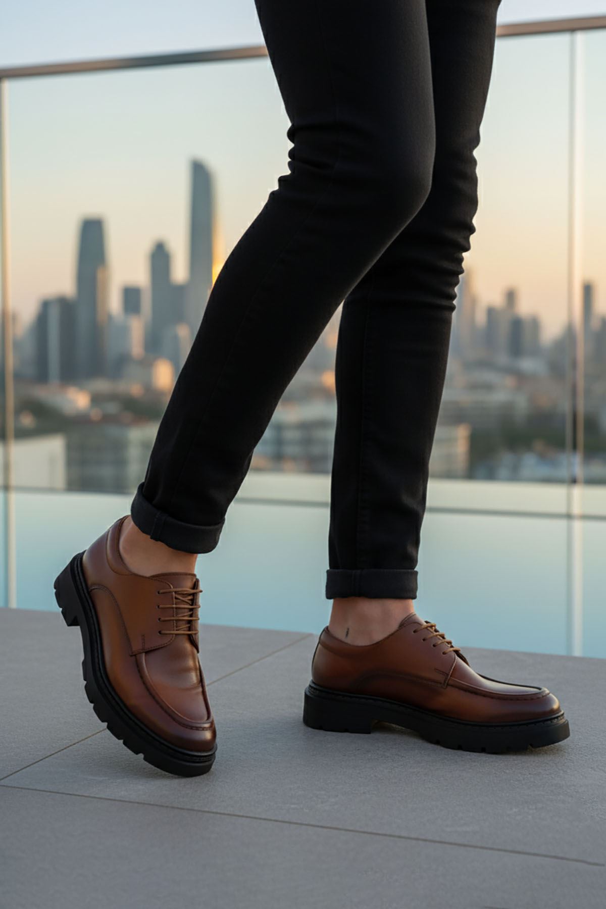 Taba Bağcıklı Hakiki Deri Kalın Taban Erkek Klasik Ayakkabı